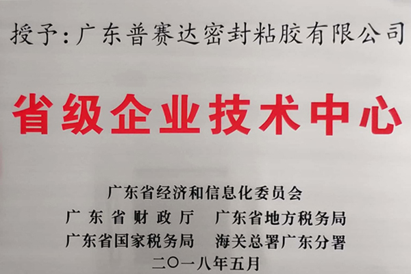 喜訊! 廣東普賽達(dá)密封粘膠有限公司榮獲“省級(jí)企業(yè)技術(shù)中心”。? ?