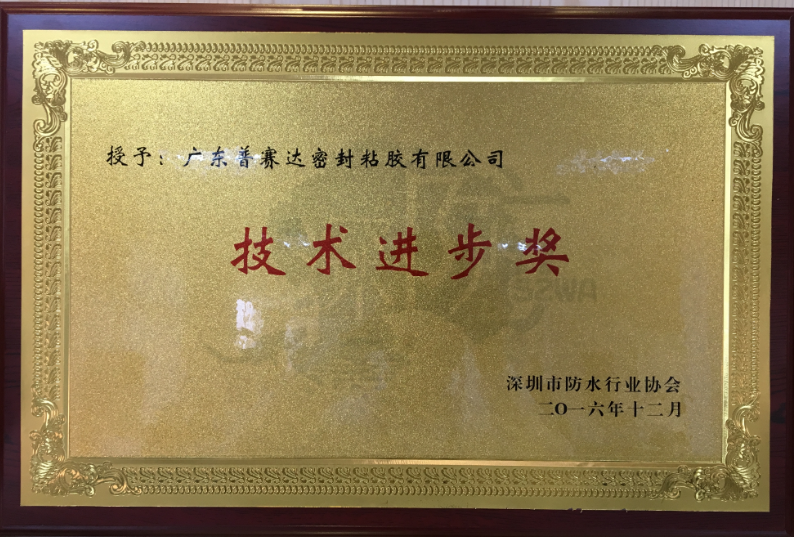 在會議表彰企業(yè)的環(huán)節(jié),經過與會領導及各方代表的一致認可和肯定,深圳市防水行業(yè)協(xié)會決議通過并授予廣東普賽達密封粘膠有限公司“技術進步獎”。