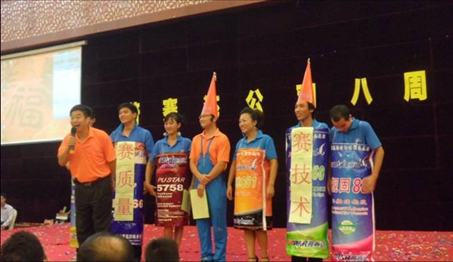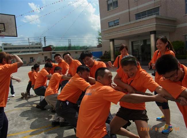 第一部分,拓展活動。8月12日上午8:30全體普賽達(dá)人整齊、有序的聚集在行政大樓前,接受公司創(chuàng)始人兼總經(jīng)理任總廠慶的致詞。接下來普賽達(dá)公司在歡快的鑼鼓聲、震耳欲聾的禮炮聲中拉開了8周歲生日慶典的序幕。上午廠區(qū)拓展活動有拔河比賽、羽毛球比賽、乒乓球比賽、摸著石頭過河等拓展活動。每個項目都有嘉賓參與其中,且所有嘉賓都換上了普賽達(dá)密封粘膠橙色廣告衫。在整個拓展活動的過程中,映入我們眼簾的盡是一片片、一處處、一點點橙燦燦的色彩。此時此刻我們已分不清楚嘉賓和員工,只知道我們都是普賽達(dá)人,我們盡情的歡笑、我們快樂的參與,我們爭先恐后向家人展示自己的熱情與活力,讓我們的家人感受到我們永不服輸、敢于拼搏的精神。
