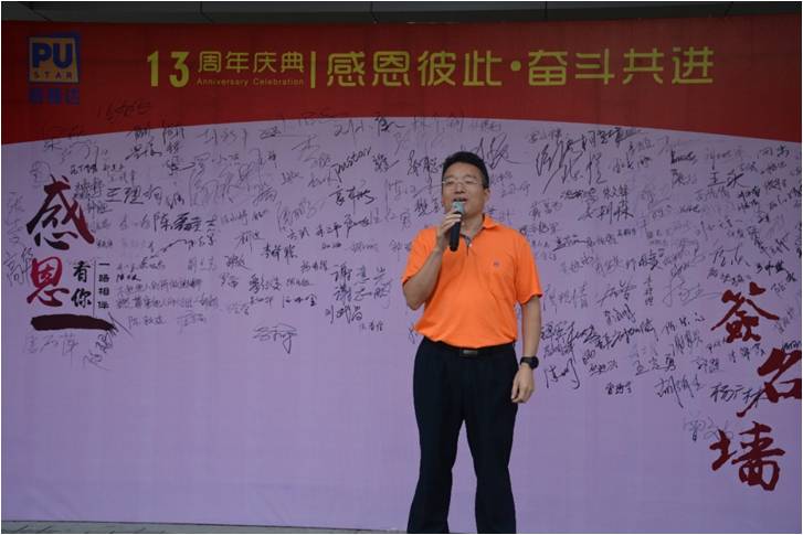 隨著運動員進行曲的響起,全員迅速在行政樓前集合,隊伍整齊精神地排列。緊接著,普賽達總經(jīng)理任紹志先生發(fā)言,回顧了公司從0到13的跨越,構(gòu)建未來藍圖,借此,拉開了13周年慶的序幕。