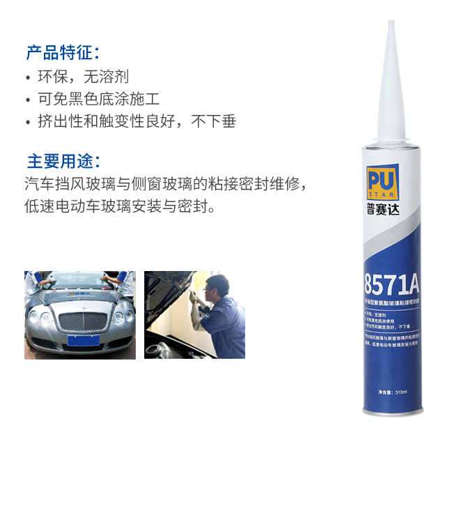 單組分濕氣固化聚氨酯密封膠,具有優(yōu)良的密封性能和內(nèi)聚力,對被粘基材無腐蝕,無污染,與金屬、玻璃等多種基材粘接性好。