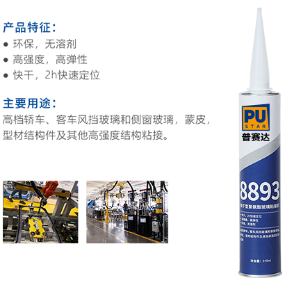 8893快干型聚氨酯玻璃粘接膠是一種單組分濕氣固化聚氨酯膠,低溫固化速度快,具有良好的內(nèi)聚力和密封性能,對基材無腐蝕、無污染,對環(huán)境無污染。