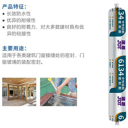 6134為單組分濕氣固化密封膠,采用中性硅酮膠作為原料, 對環(huán)境無污染,與金屬、陶瓷、玻璃、石材等多種基材具有良好的密封粘接性能。